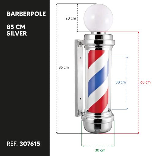 Barber Pole Med Topp Lampa 85 cm Silver