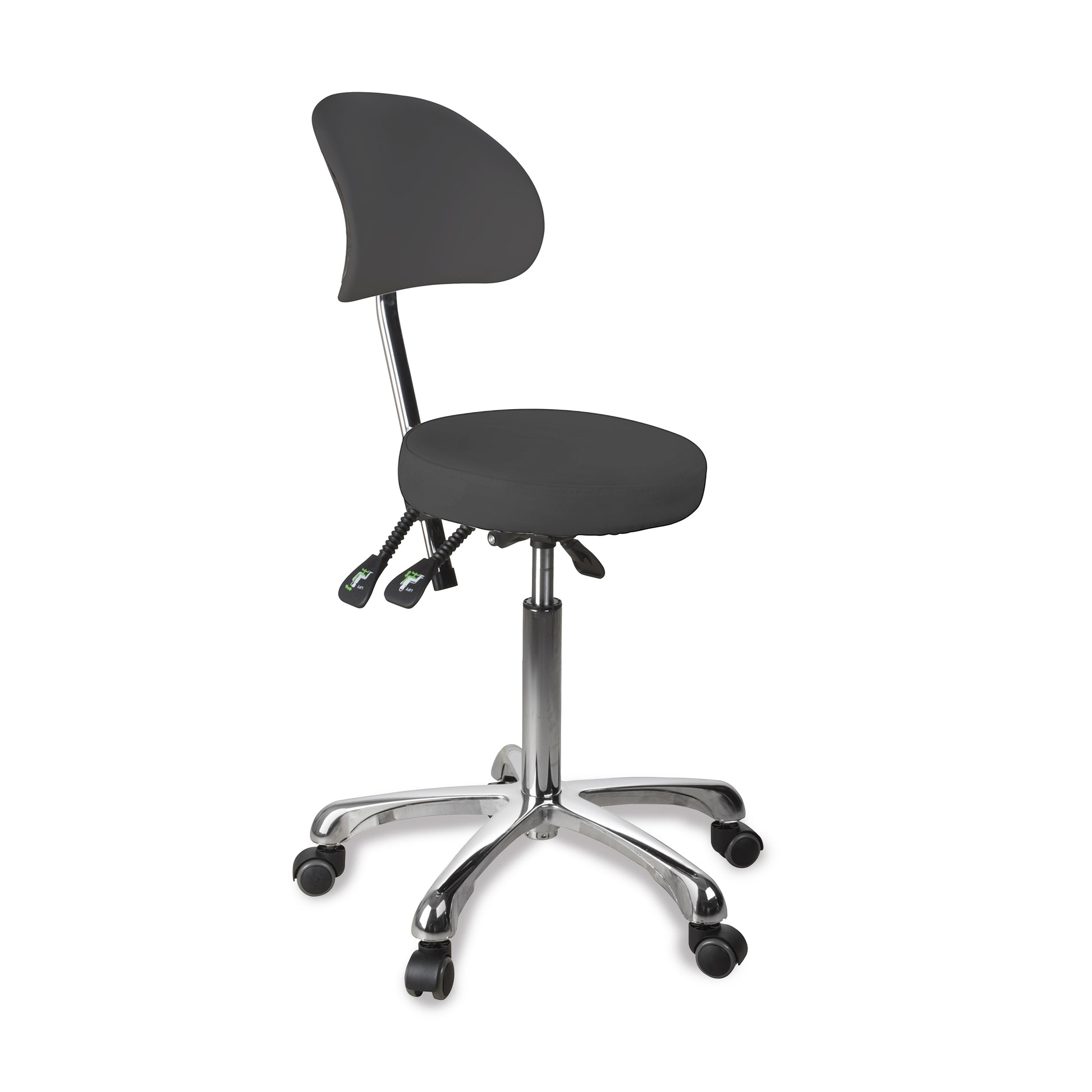 Rundt, flatt sete med ergonomisk ryggstøtte som gir optimal støtte gjennom hele arbeidsdagen.