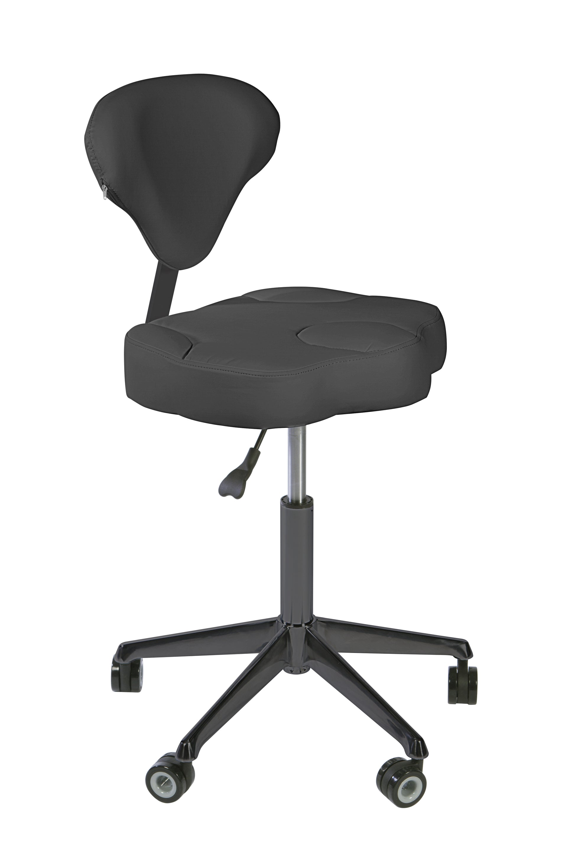Stol med flatt sete og ergonomisk utformet ryggstøtte for optimal støtte og komfort under arbeid.